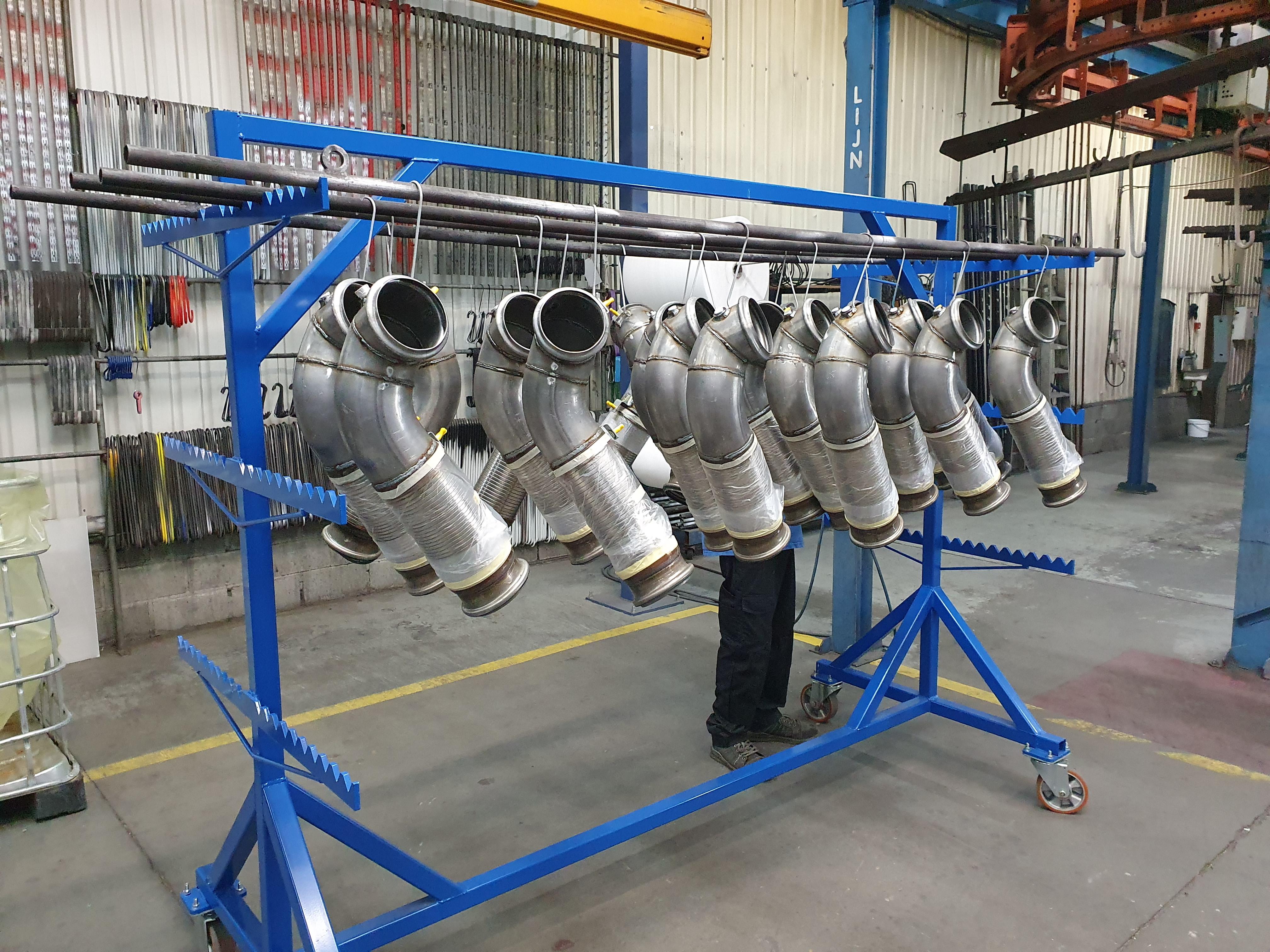 Daarnaast beschikken we over een wastunnel die ontvetting en een eerste ijzerfosfatie aanbrengt op metalen onderdelen, wat zorgt voor extra bescherming tegen roest.
